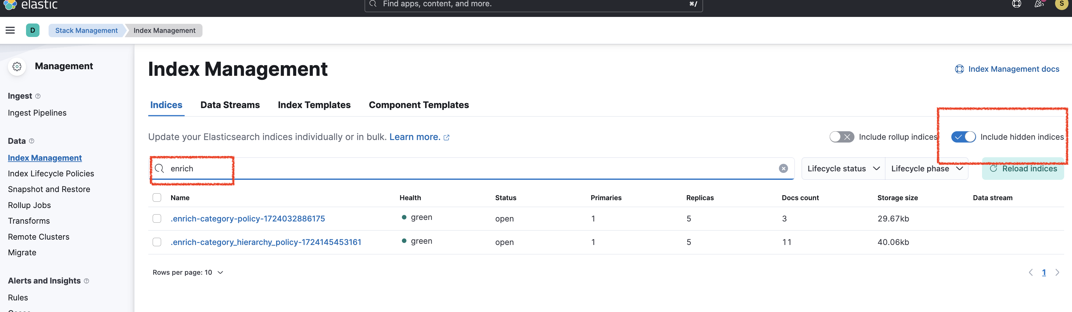 - 우리가 생성한 .enrich-category_hierarchy_policy 인덱스를 클릭합니다.