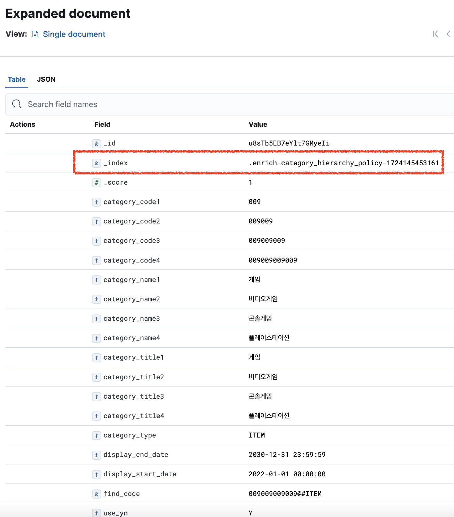 - 우리가 생성한 .enrich-category_hierarchy_policy 인덱스를 클릭합니다.